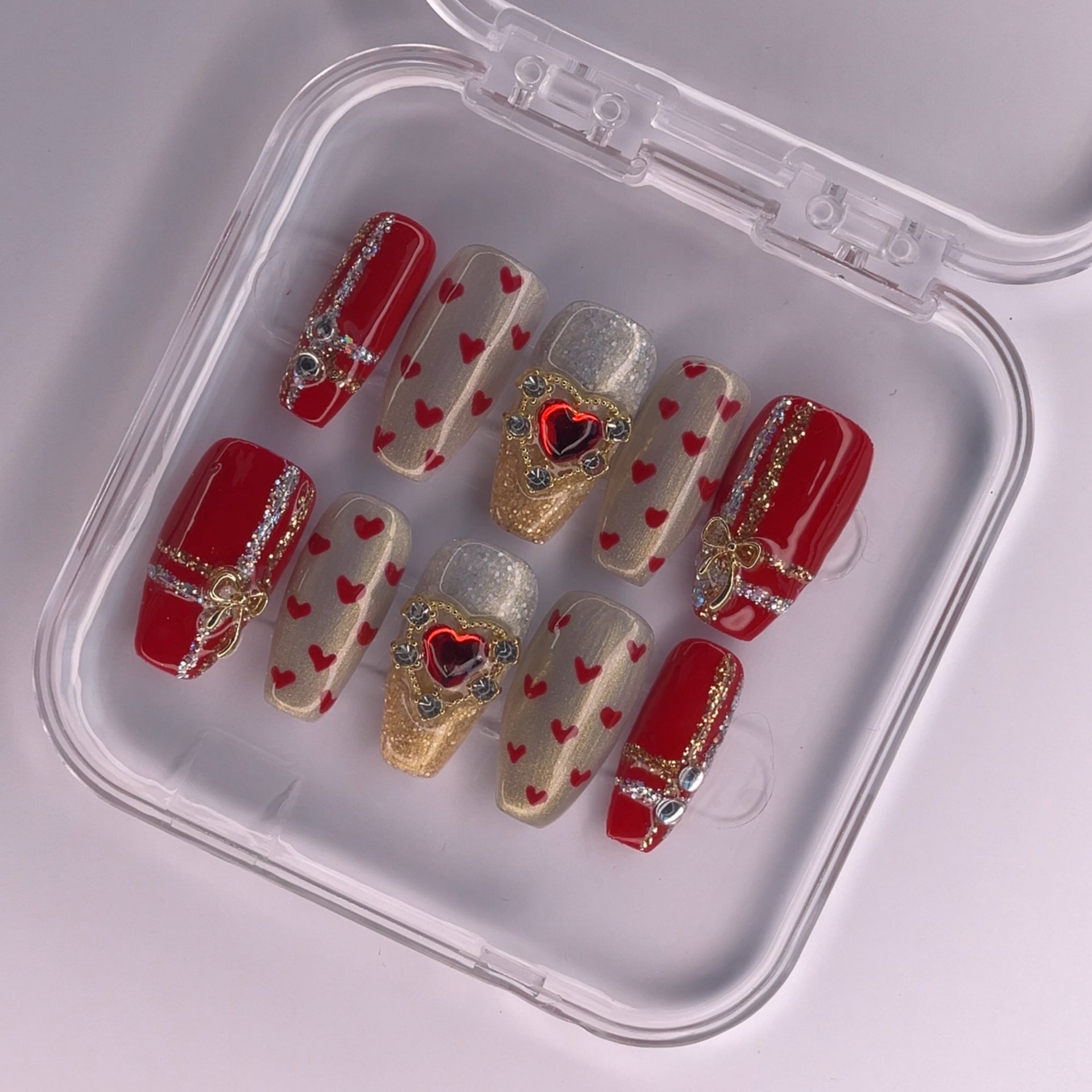 Finish: Glossy + Glitter + Gemstone hearts + 3D bows